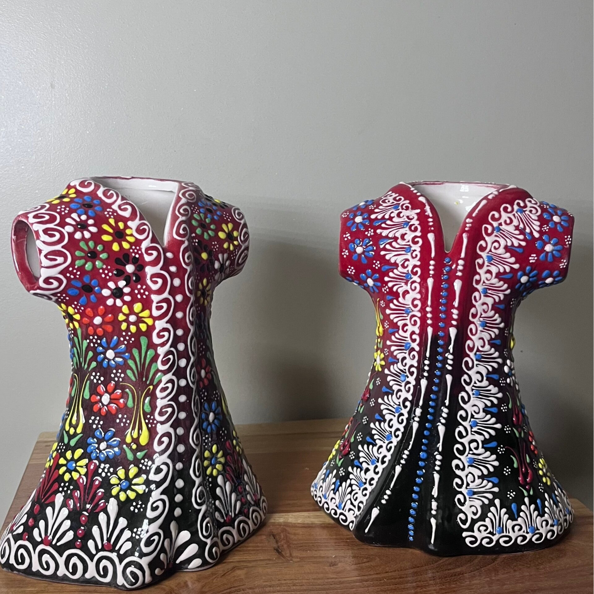 Ce duo de petits kaftans en céramique turque est une création artisanale peinte à la main, mettant en valeur des motifs traditionnels et des couleurs harmonieuses. Élégants et décoratifs, ils apportent une touche authentique et chaleureuse à votre intérieur, parfaits pour habiller une étagère, un meuble ou un espace d’accueil.
